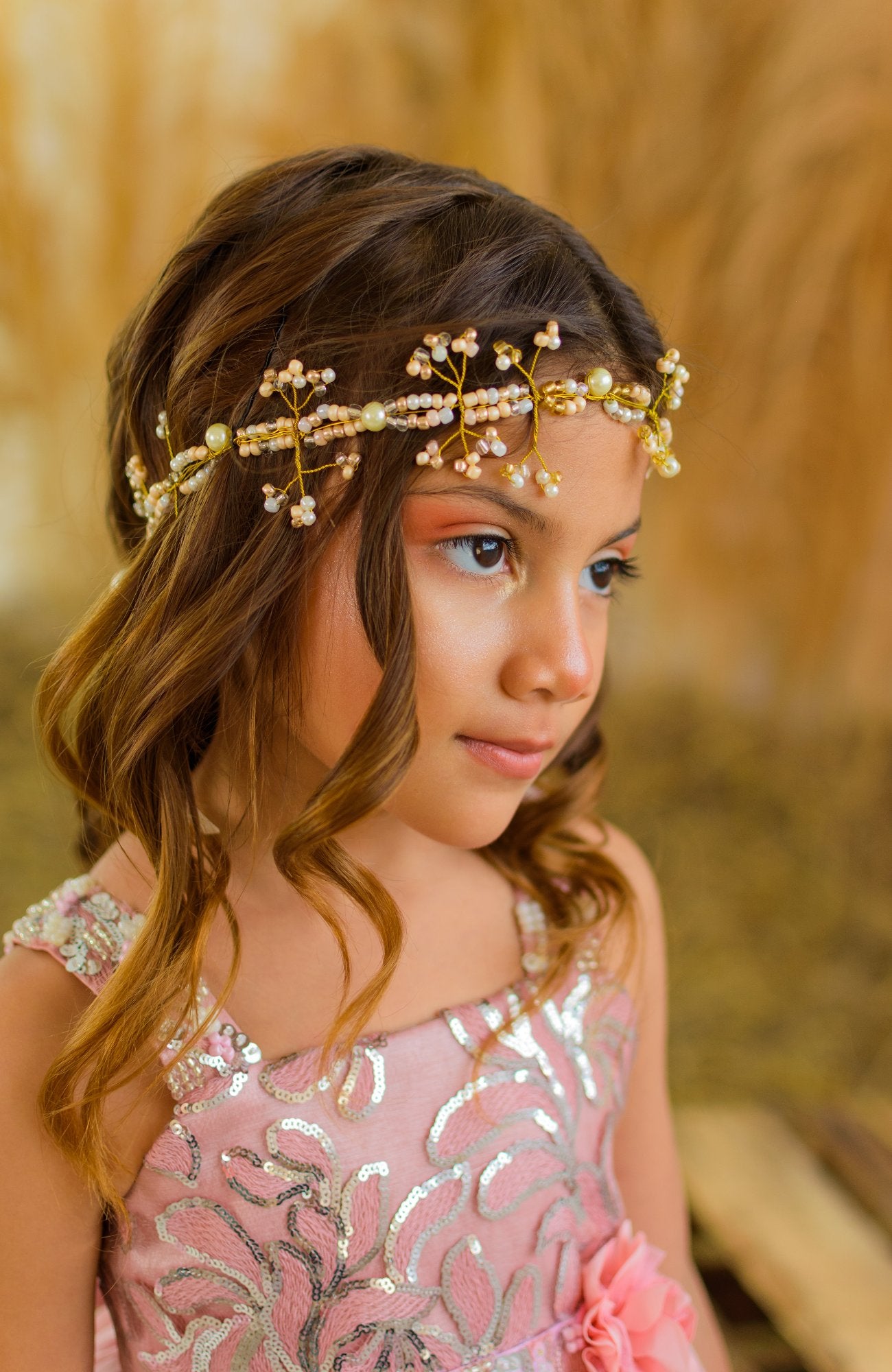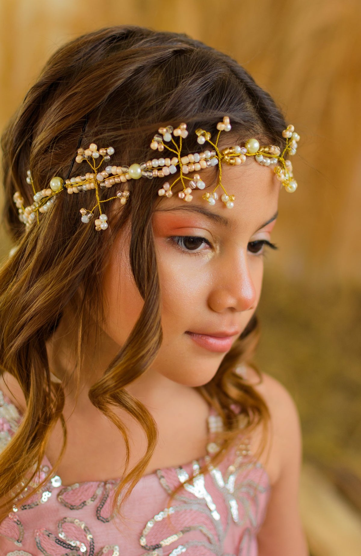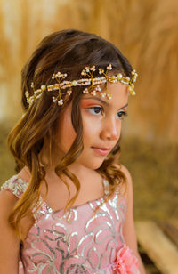 Tiara elaborada en alambre y decorada con perlas.