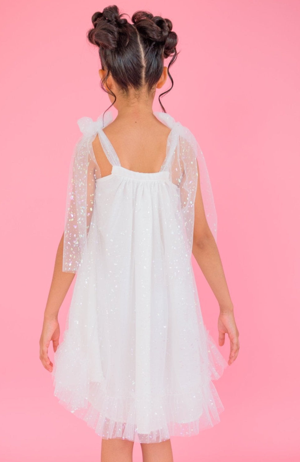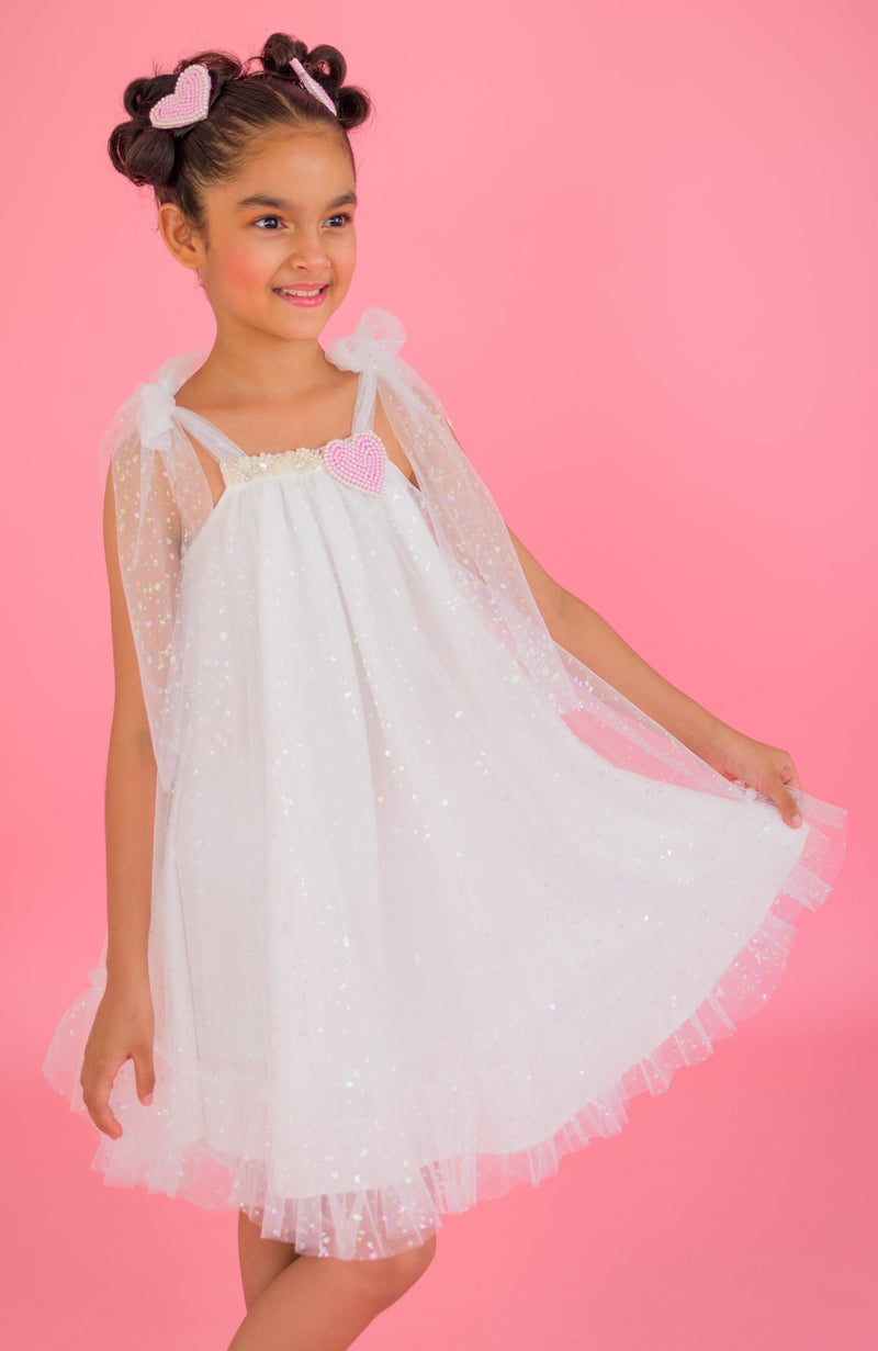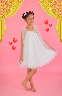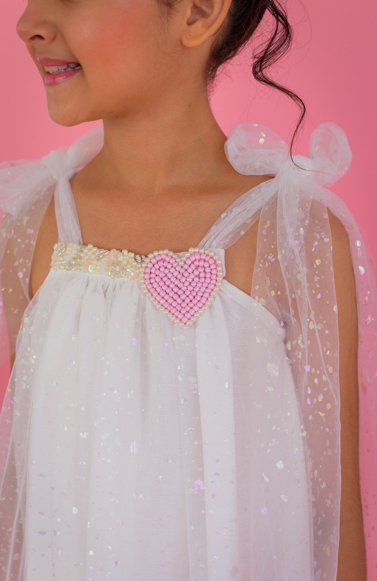 El vestido Confidencia Blanco es la elección perfecta para que tu pequeña se sienta especial en cualquier ocasión. Con su elegante color blanco, este vestido irradia pureza y frescura. La prenda cuenta con un suave forro que proporciona comodidad, mientras que la tela exterior transparente con brillo añade un toque de magia y sofisticación.