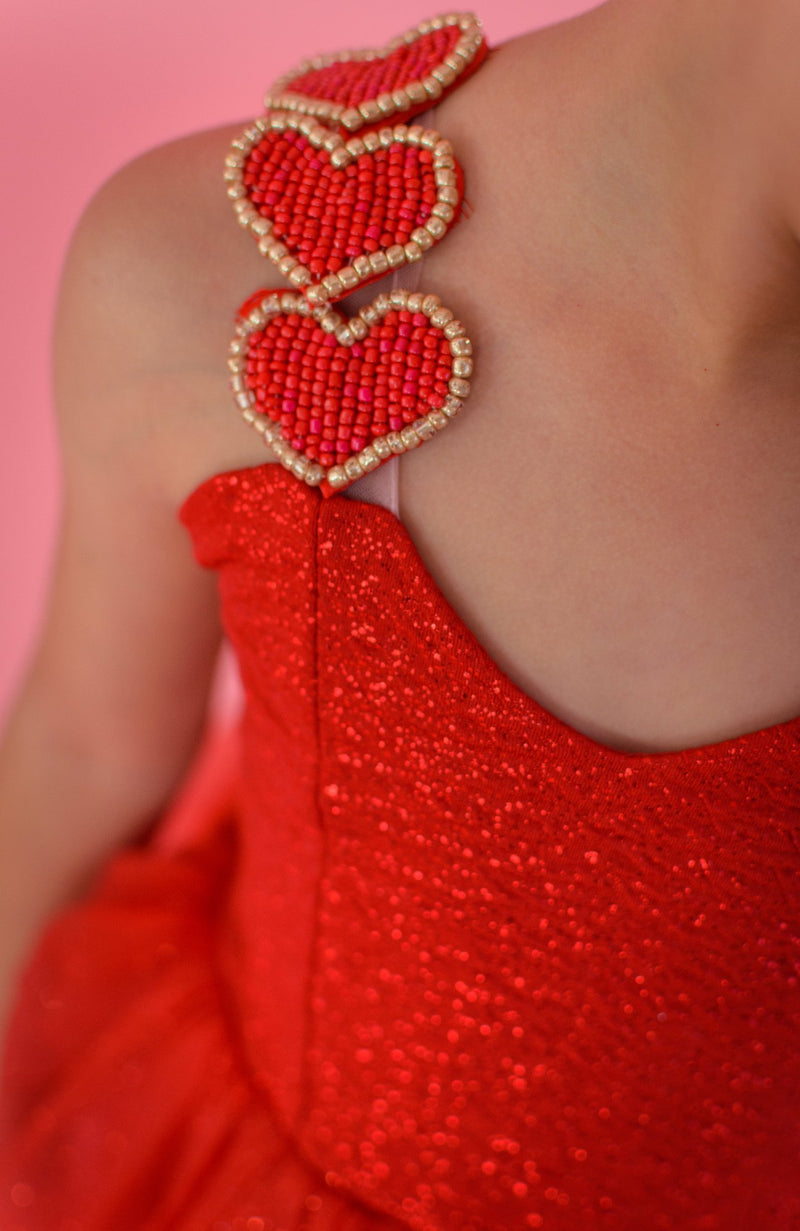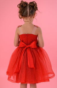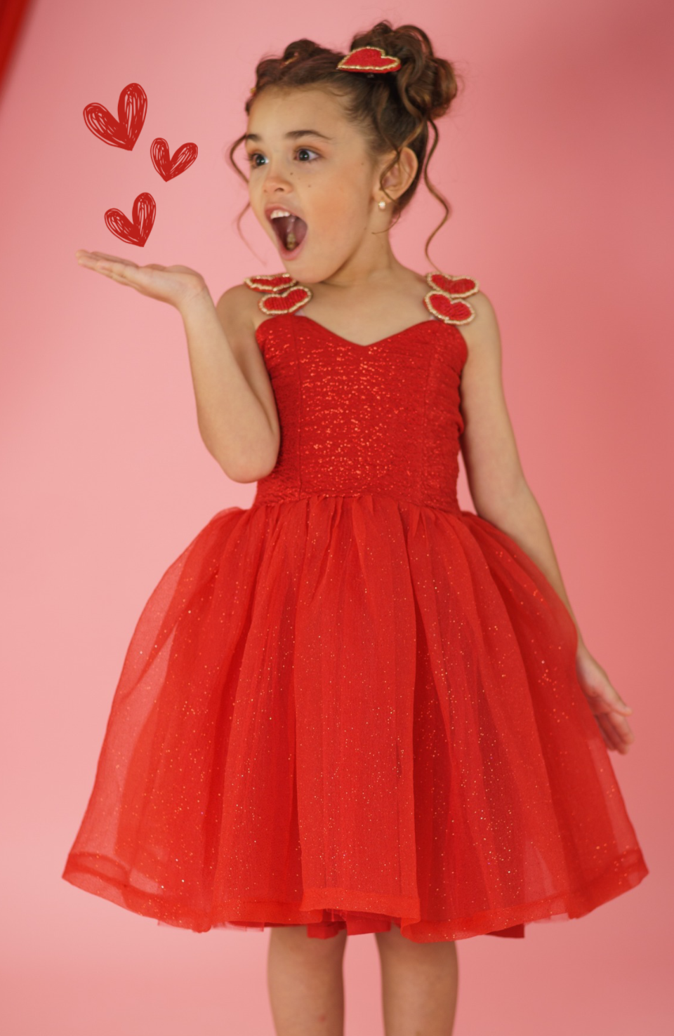 Este hermoso vestido para bebita, llamado Corazon, es una explosión de alegría y estilo. Con un vibrante tono rojo que captura la esencia de la diversión y la energía, este diseño es perfecto para cualquier ocasión especial.