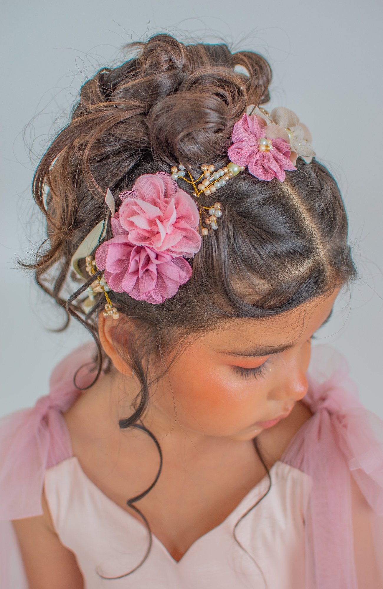 Tiara elaborada en alambre y decorada con perlas y flores.