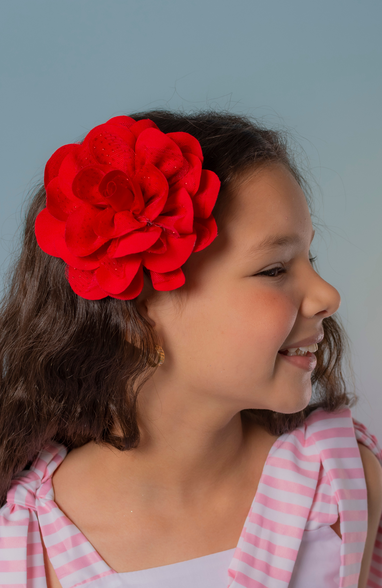 Pinzas o ganchos para el pelo, elaborados en forma de flores con tules brillantes.