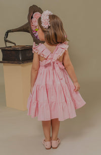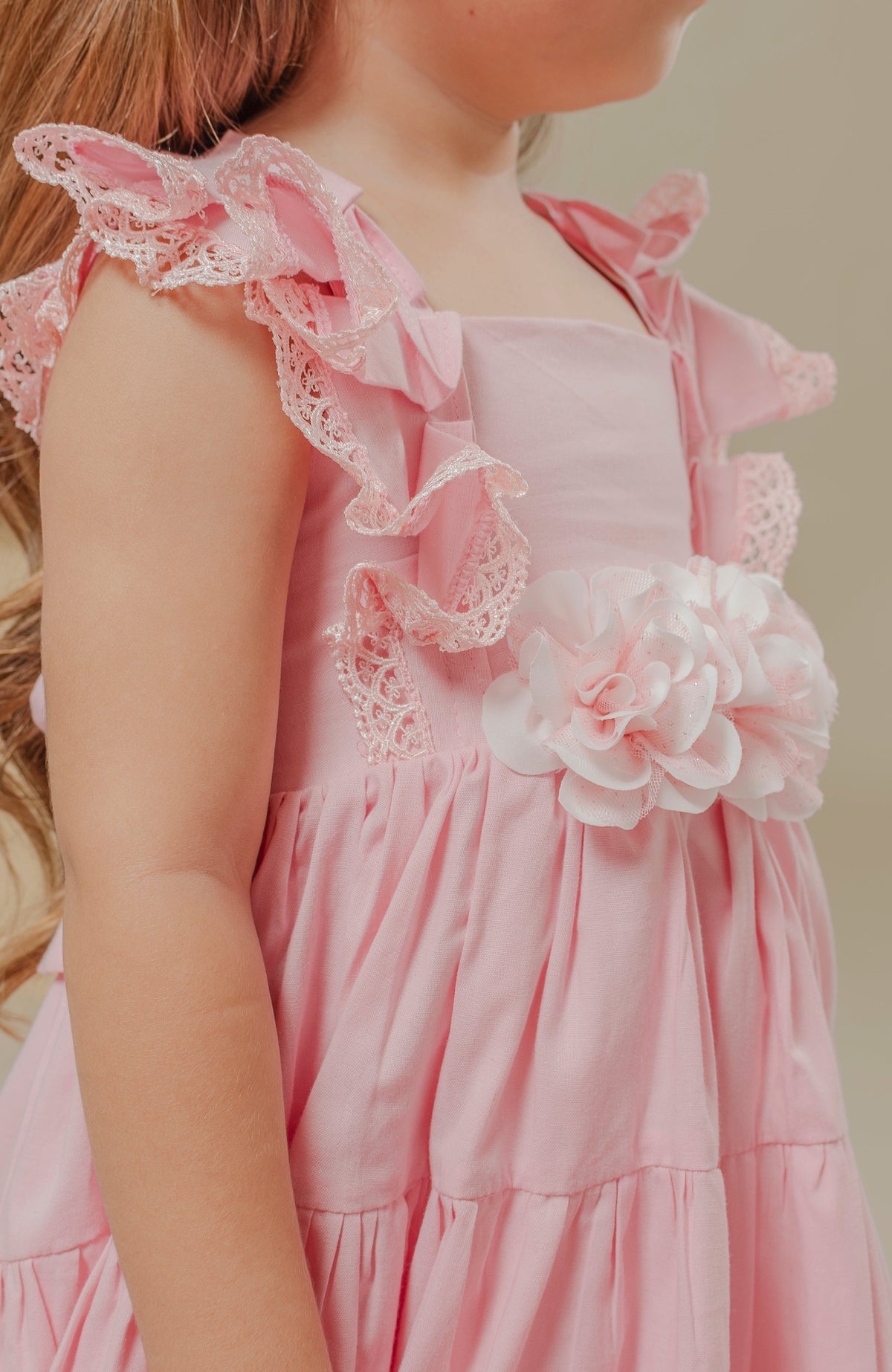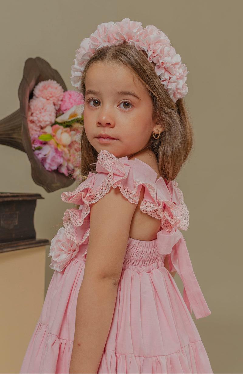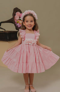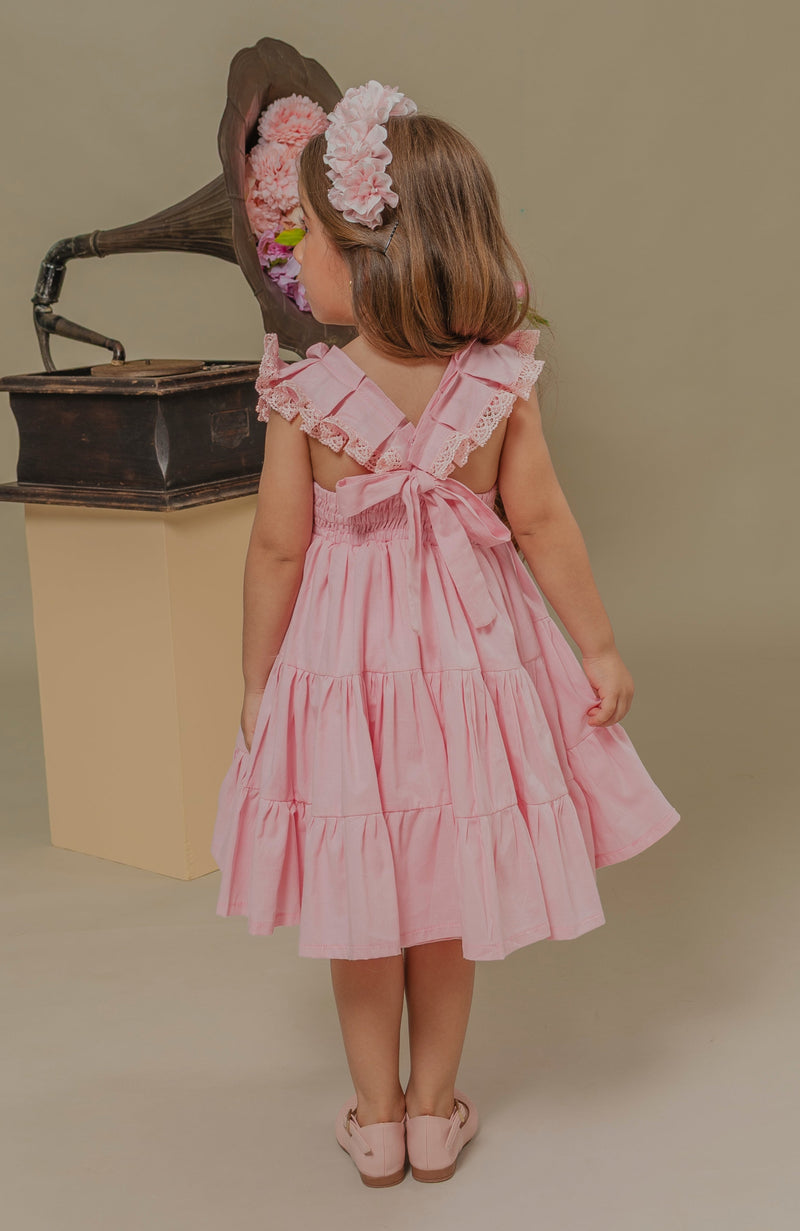 El vestido "Cartas" en color rosa es una prenda encantadora y única, perfecta para niñas que buscan un estilo dulce y divertido. Este vestido se caracteriza por su hermoso tono rosa suave, que aporta un aire de delicadeza y feminidad.