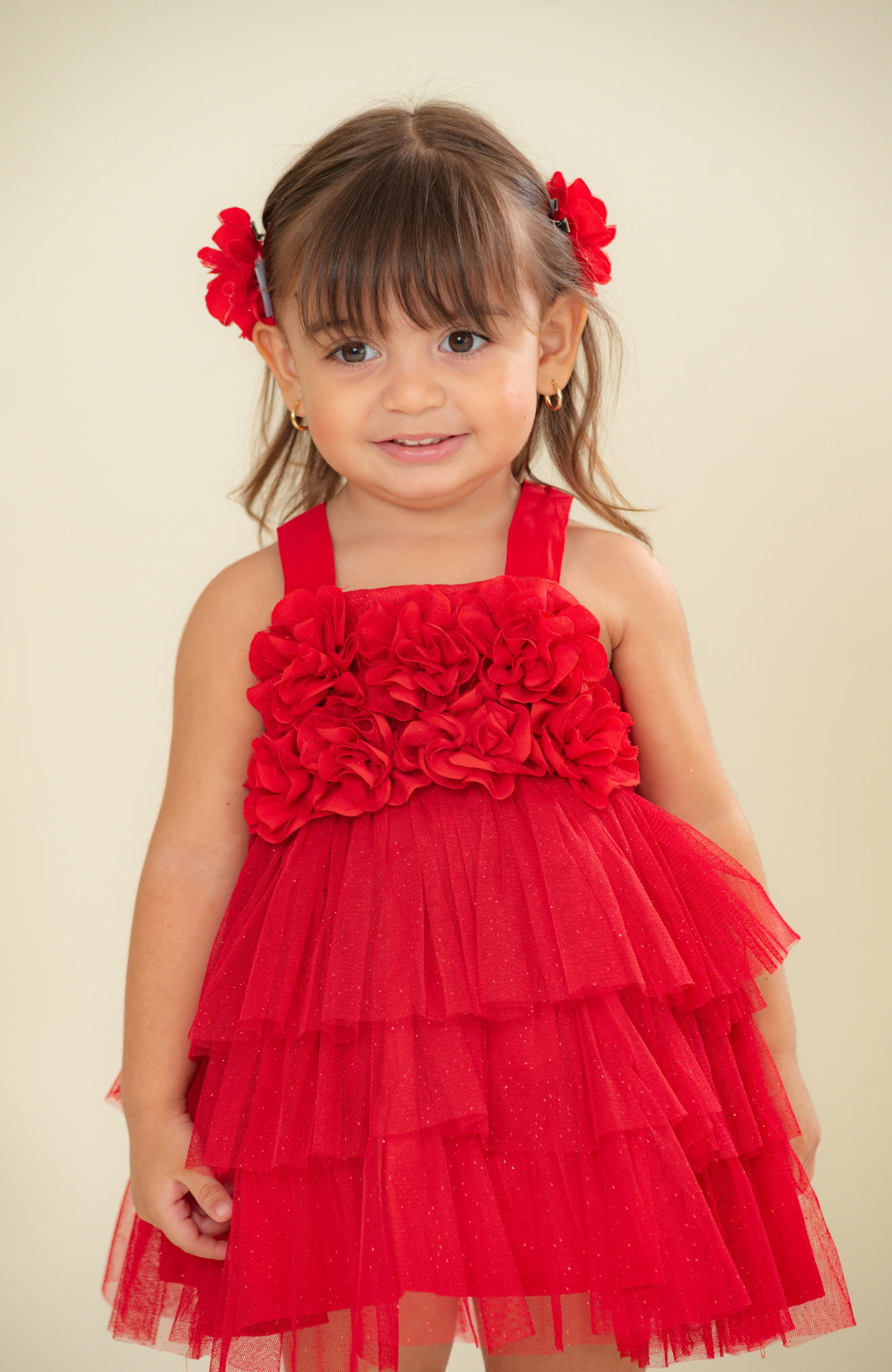 Descubre el enterizo "Voz" para tu pequeña, una prenda que encapsula la dulzura y la pureza de los primeros sonidos de tu bebé. Inspirado en la suavidad de su voz, este enterizo está diseñado en color rojo, con telas de tull y decorado con flores de telas en su pecho, para ofrecer un estilo tierno.